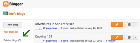 يحدث أحيانا أن يقوم صاحب المدونة بحذف احدى مدوناته بالخطأ و يرغب في استعادتها و هو امر ممكن حيث اتاحت بلوجر امكانية استعادة المدونة المحذوفة و لكن بشرط ان لا يكون قد مر وقت طويل على الحذف